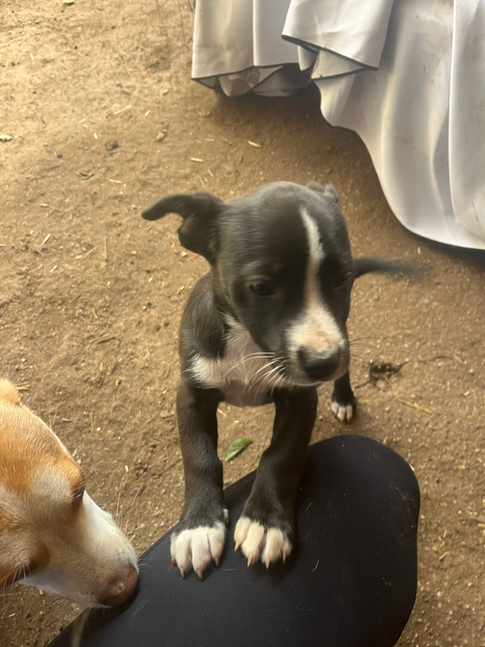 Leila (la maman) et ses cinq petites chiennes ont été retrouvées abandonnées devant le refuge.